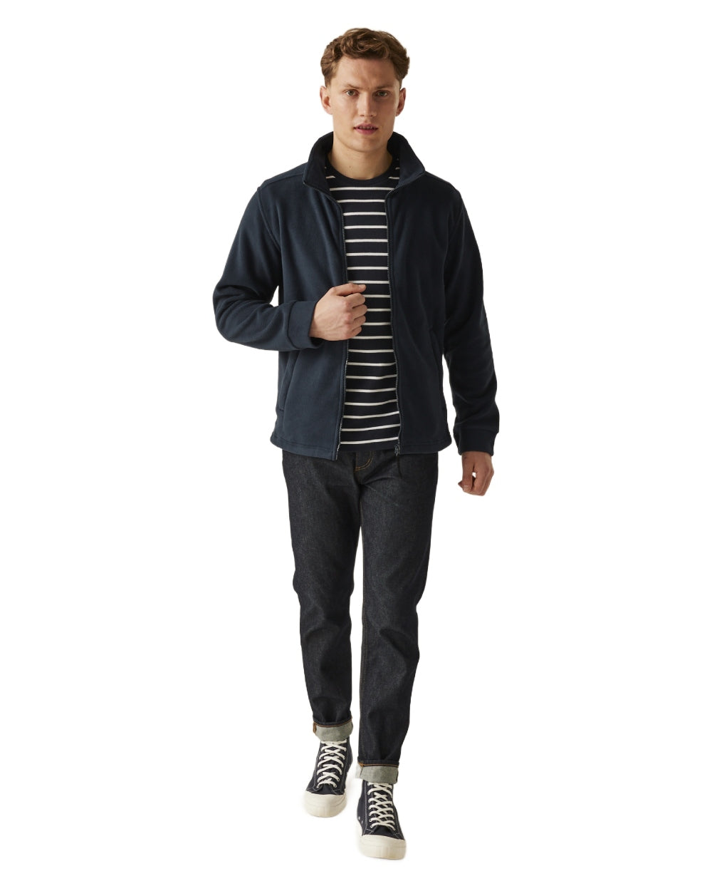 Navy coloured Regatta Mens Classic Full Zip Fleece on white background