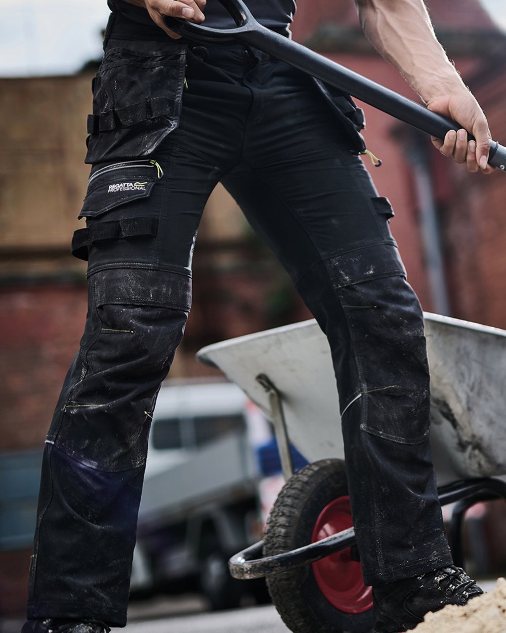 Durable and comfy, Regatta trousers are made for adventure. The men's work trousers are made from durable fabric that'll withstand everyday wear and tear. Natural stretch makes sure the walking trousers move with you, and a high waist keeps everything covered. Perfect for walking in the hills or working outdoors. Keep your essentials, tools and valuables safe in the multiple pockets.