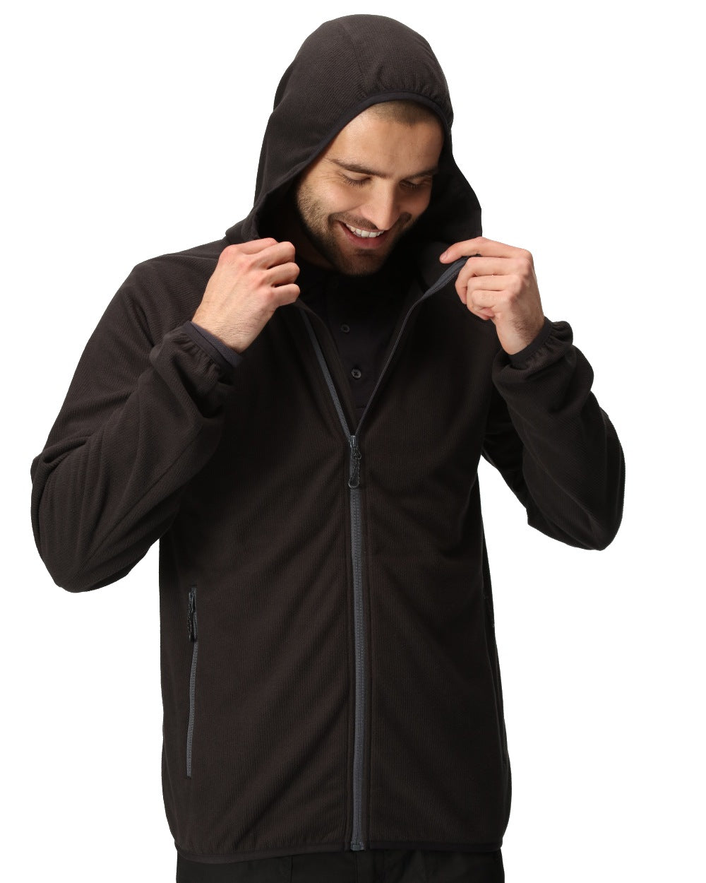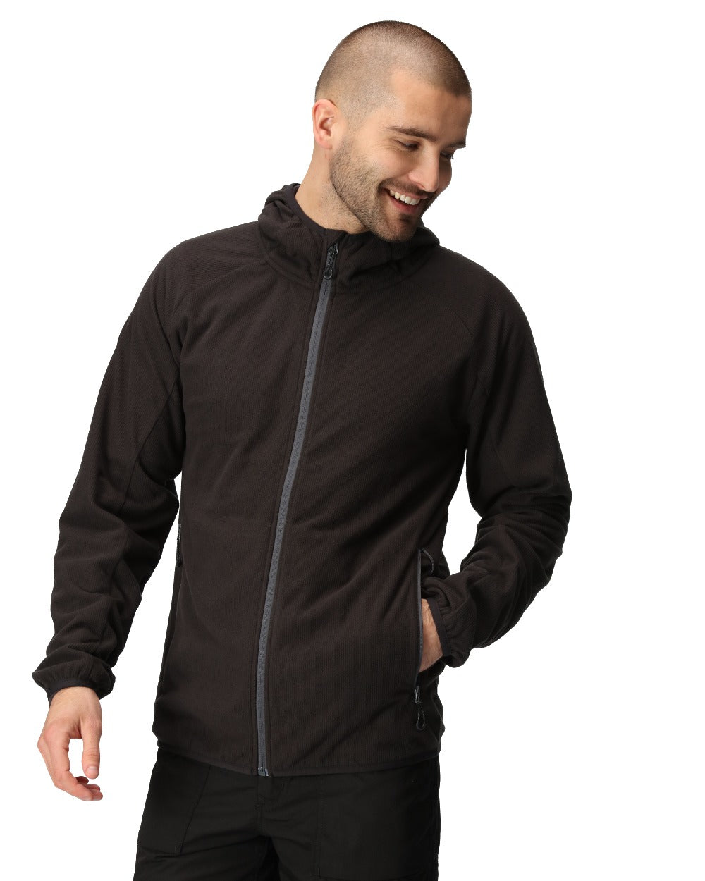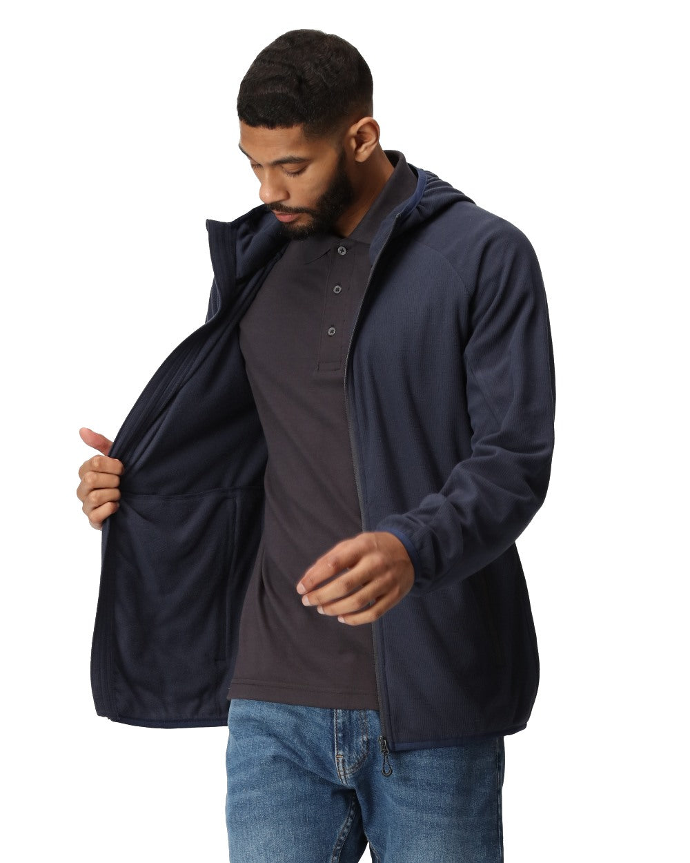 Cosy, warm and lightweight, Regatta Navigate Hooded Full Zip mens fleece is the ideal midlayer for your wardrobe this season. Featuring Regatta Layerlite fabric, the fleece is perfect for on-the-go wear. Pop underneath a jacket for extra warmth, or wear as an outer layer in milder weather.
