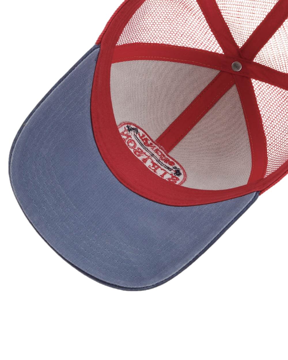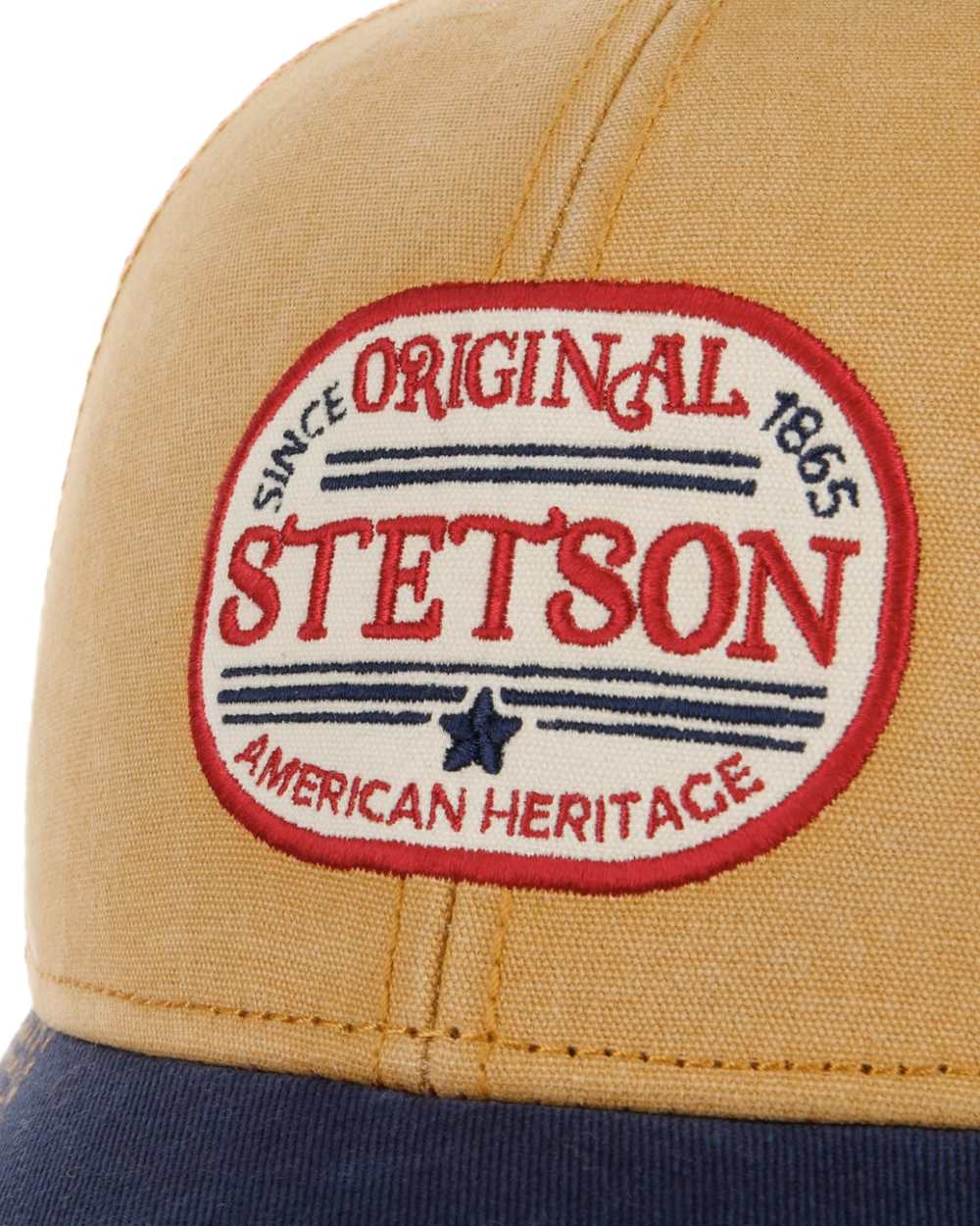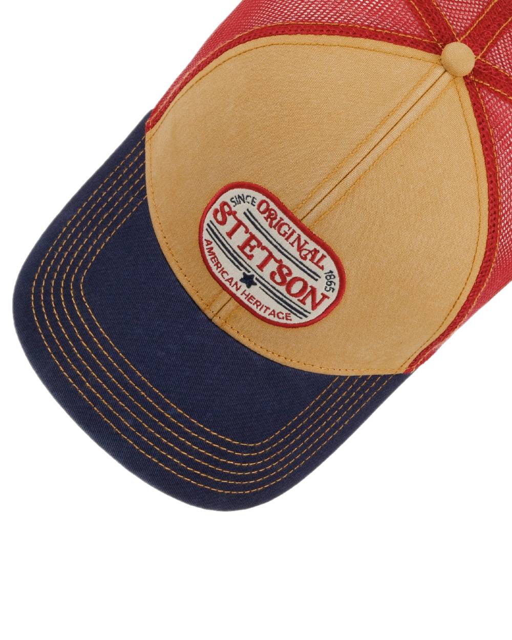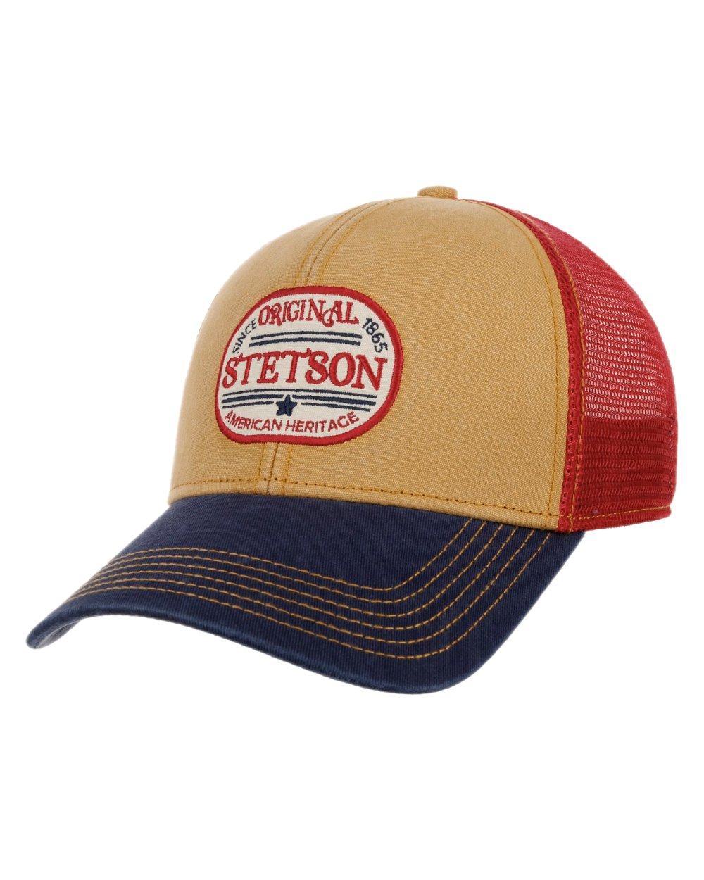 Authentic vintage look. The large brand embroidery on the trucker cap tells you that it is an original from Stetson. Made up of six panels and a curved peak, the multicoloured cap has a sporty look and can be easily combined with your casual wardrobe. A mesh insert at the back allows fresh air to blow around your head, while the front and peak are made of 100% cotton, as is the lining.