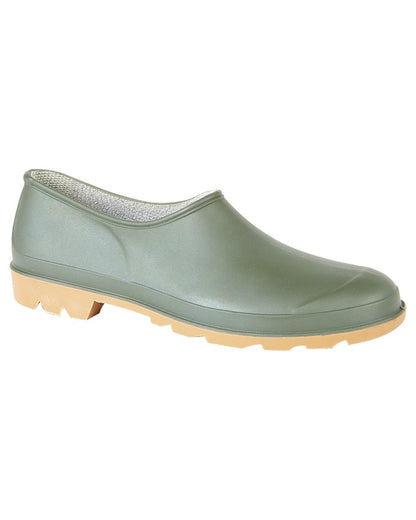 The shoe that thinks it's a wellington - this "gardener" shoe is just the thing for protecting your feet from wet grass and mud. Waterproof just like a wellington, but cut below the ankle for the comfort and convenience of a shoe. Popular with caravans and campers. Not an overshoe, the gardener shoe is worn directly on the foot.