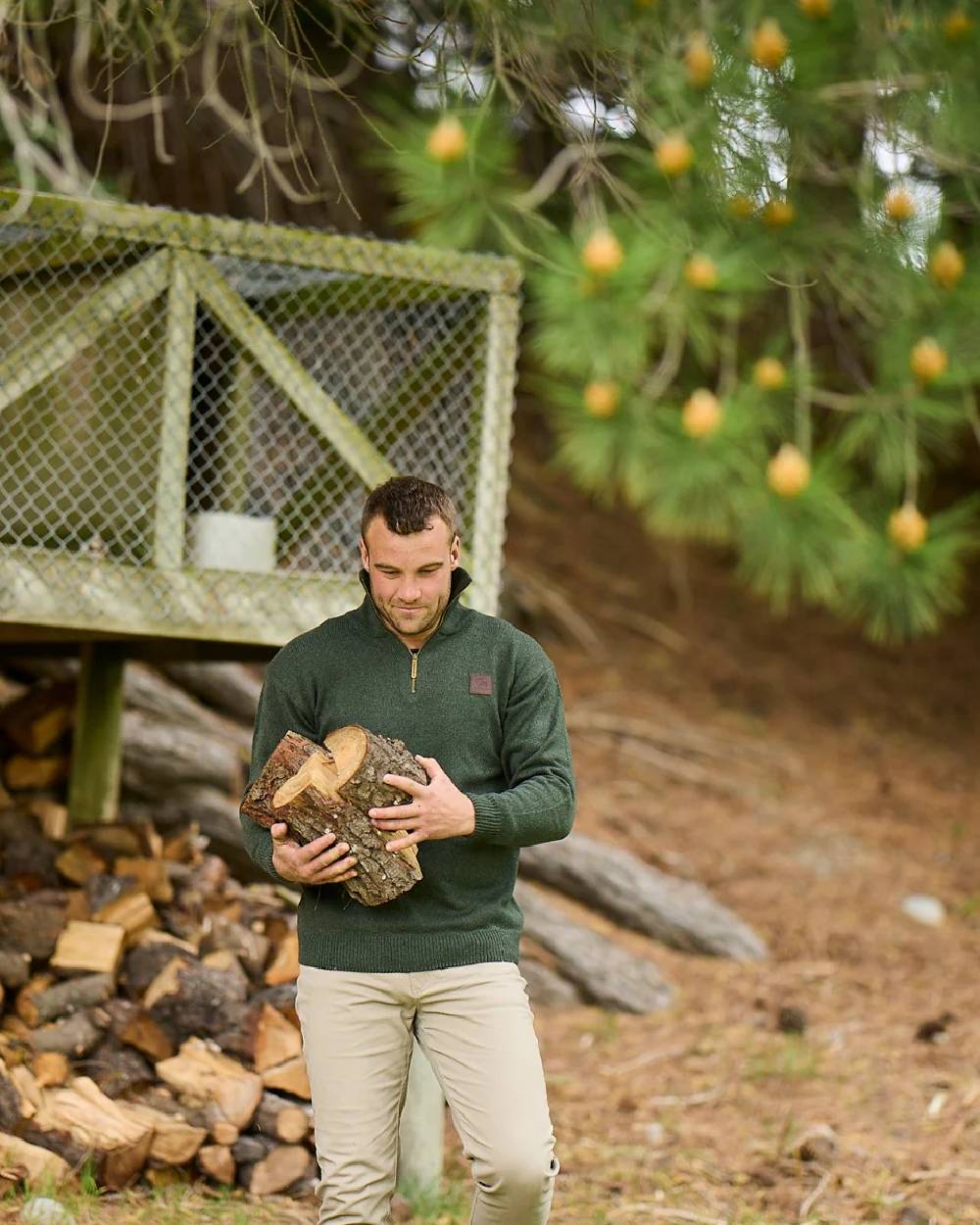 Made with a rugged blend of 65% New Zealand Wool and 35% polyester, the Mariner Zip Neck Sweater offers top-notch comfort and durability. Available in Olive, Charcoal and classic Navy, the Mariner Wool Zip Neck Sweater offers a timeless design, featuring a half zip neck, ribbed collar, cuffs, and waistband to ensure a snug fit that retains its shape over time. Our men's half-zip sweaters also feature a signature leather Swanndri brand patch. Ideal for the cooler months of Spring, Autumn, and Winter, the Mariner Wool Zip-Up Sweater is a heavy-weight knit sweater that will keep you warm. Available in a size range from XS to 3XL, our half-zip men's sweaters are a relaxed fit. To ensure the longevity of the Mariner Wool Zip Neck Sweater, gentle hand washing is recommended to maintain the sweater's shape. Our men's half-zip sweaters are versatile staples, easily paired with jeans or chinos for a polished look. Zip-up sweaters have become essential in every wardrobe, and the Mariner stands out with its quality and style. Made with ZQRX New Zealand wool.