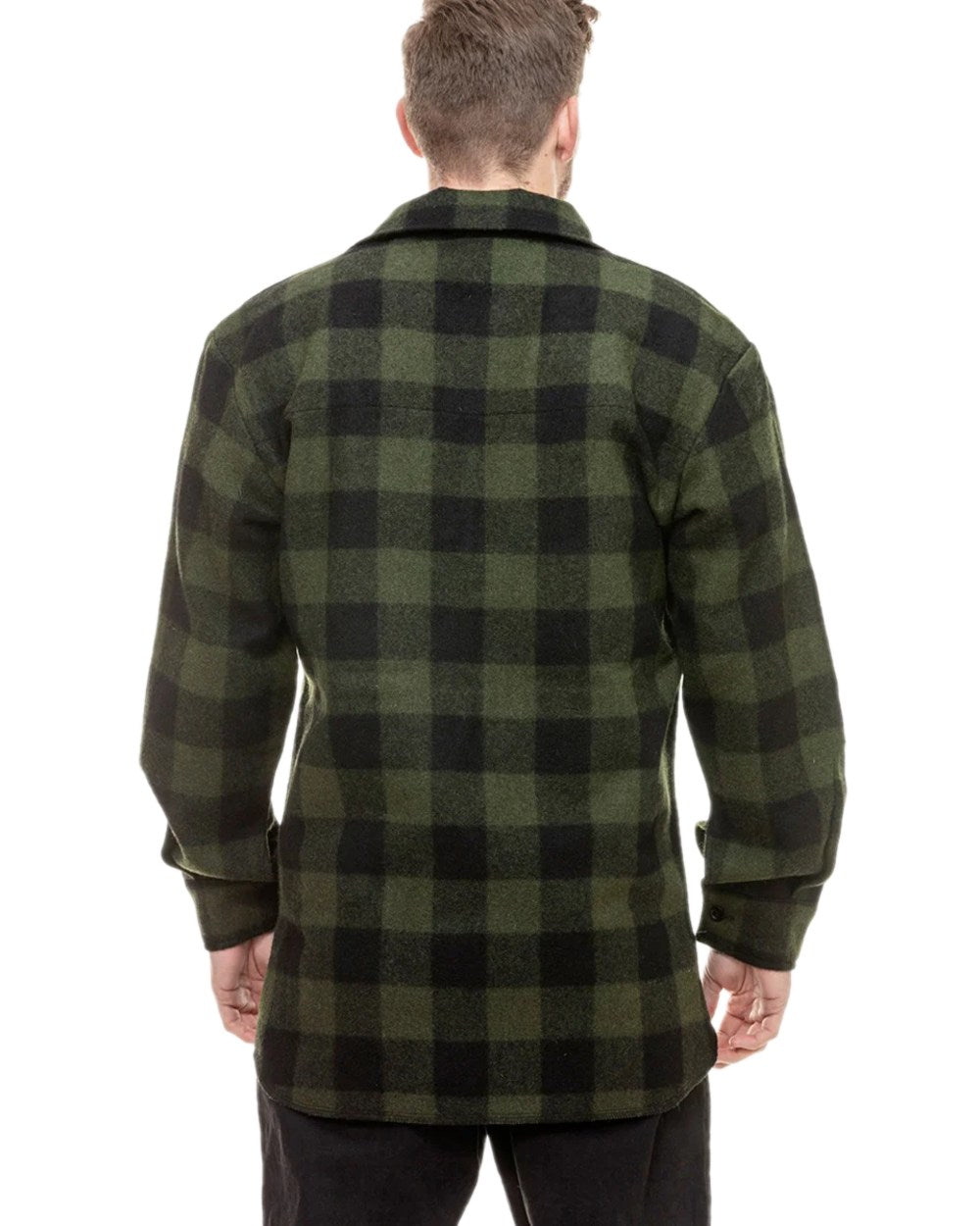 Red Black Check Coloured Swanndri Mens Ranger Wool Zip Front Bushshirt on forest background