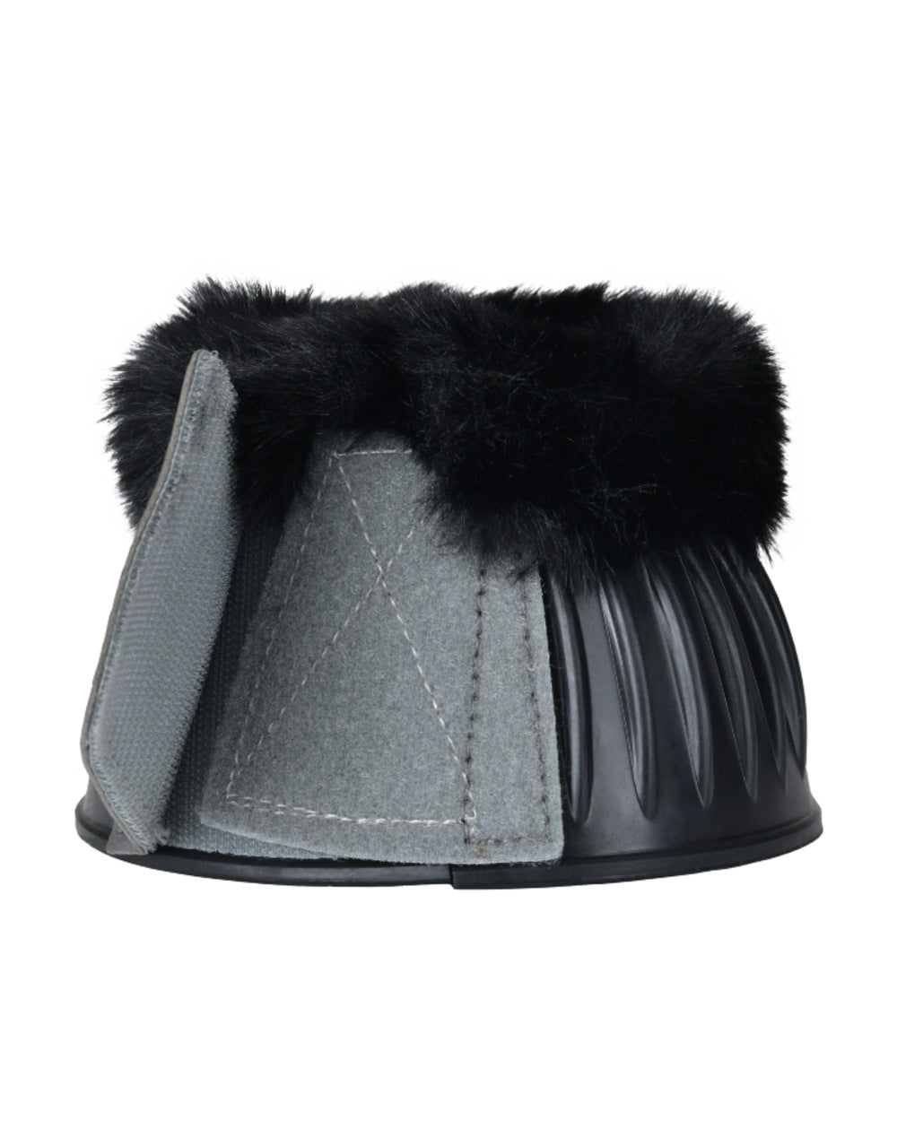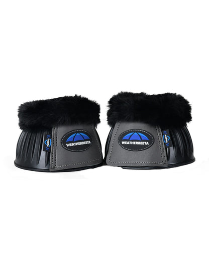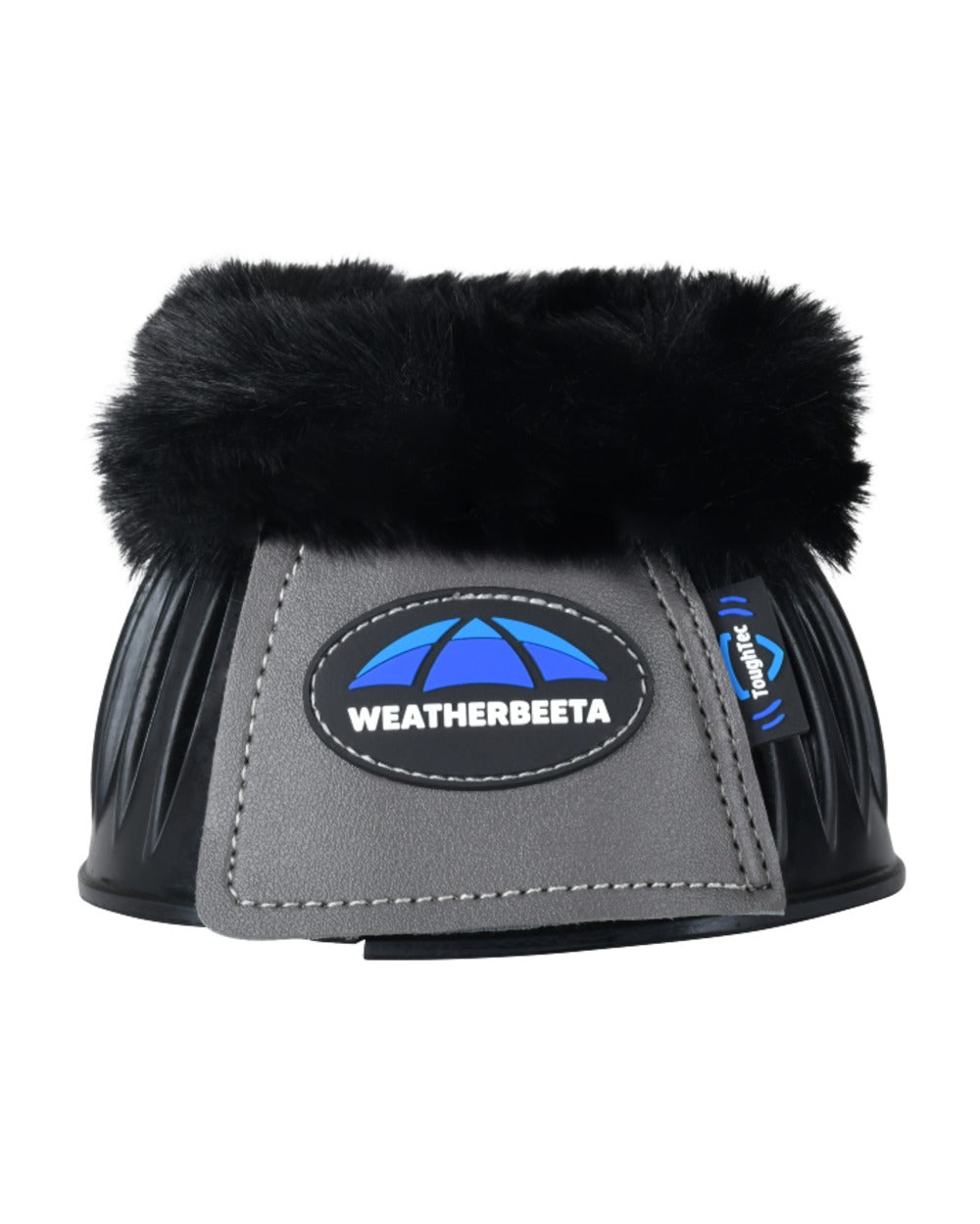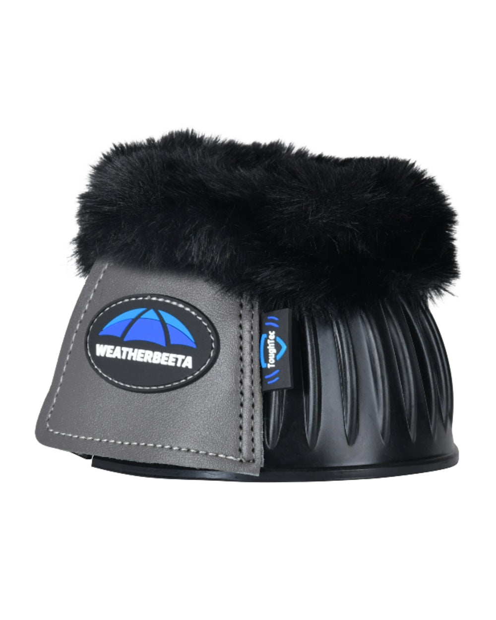 Black Grey Coloured WeatherBeeta Tough-Tec Prime Fleece Trim Rubber Bell Boots on horse background