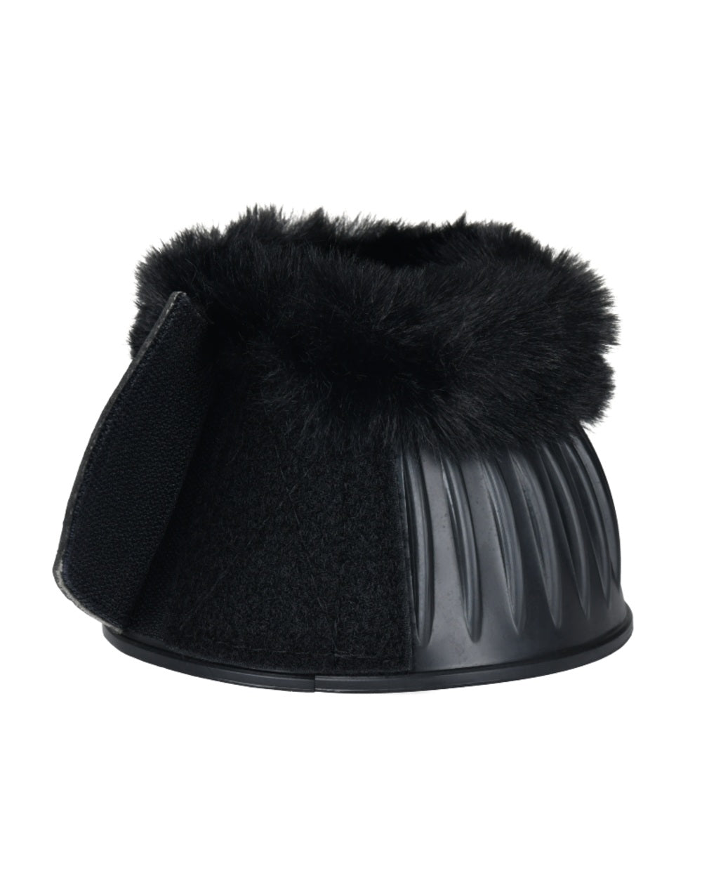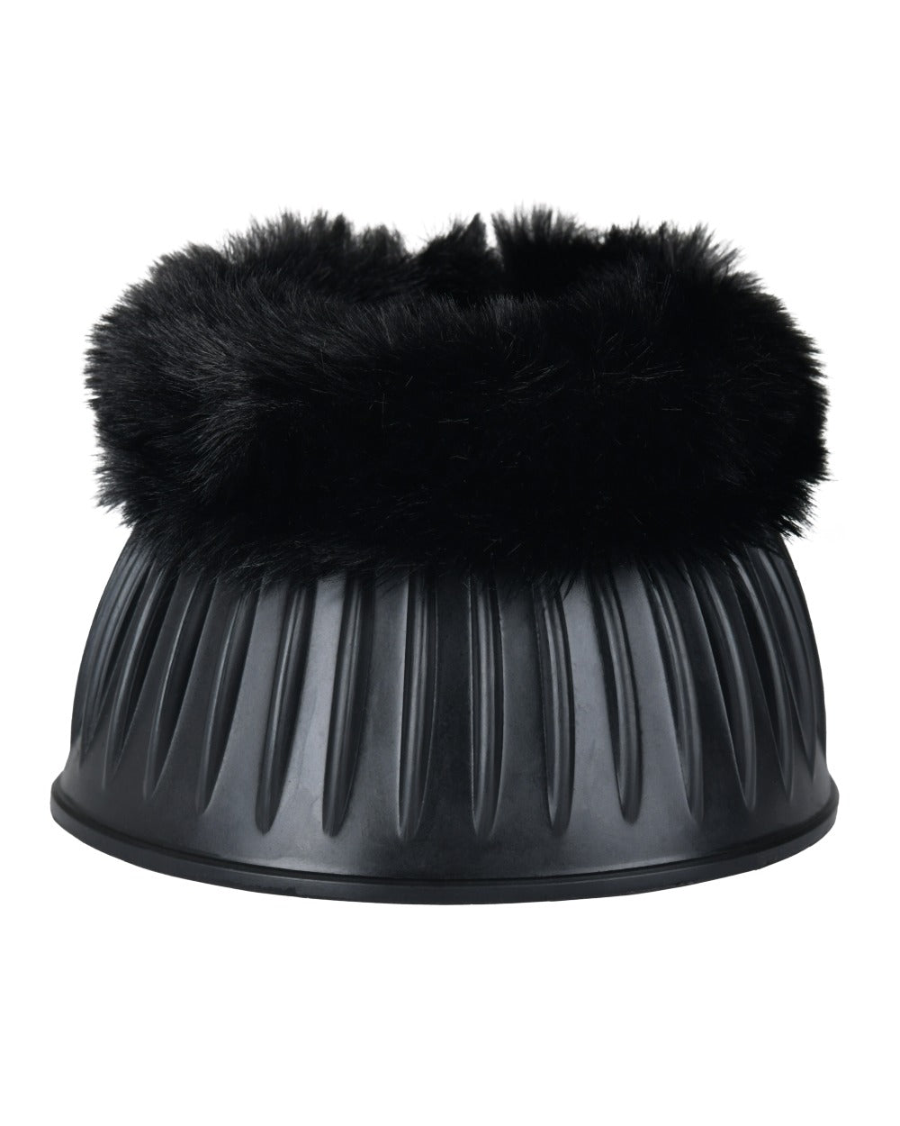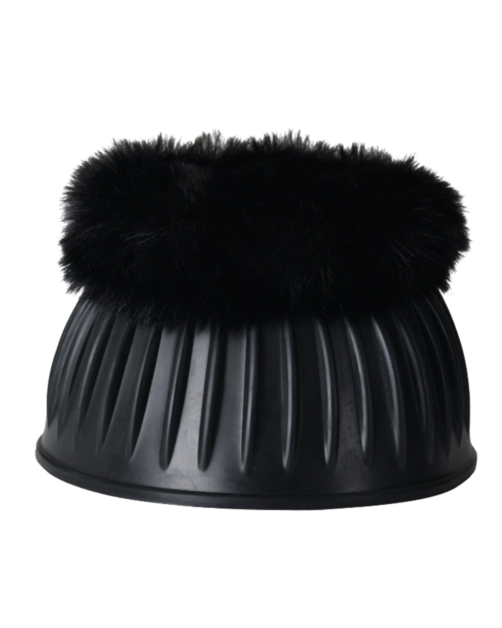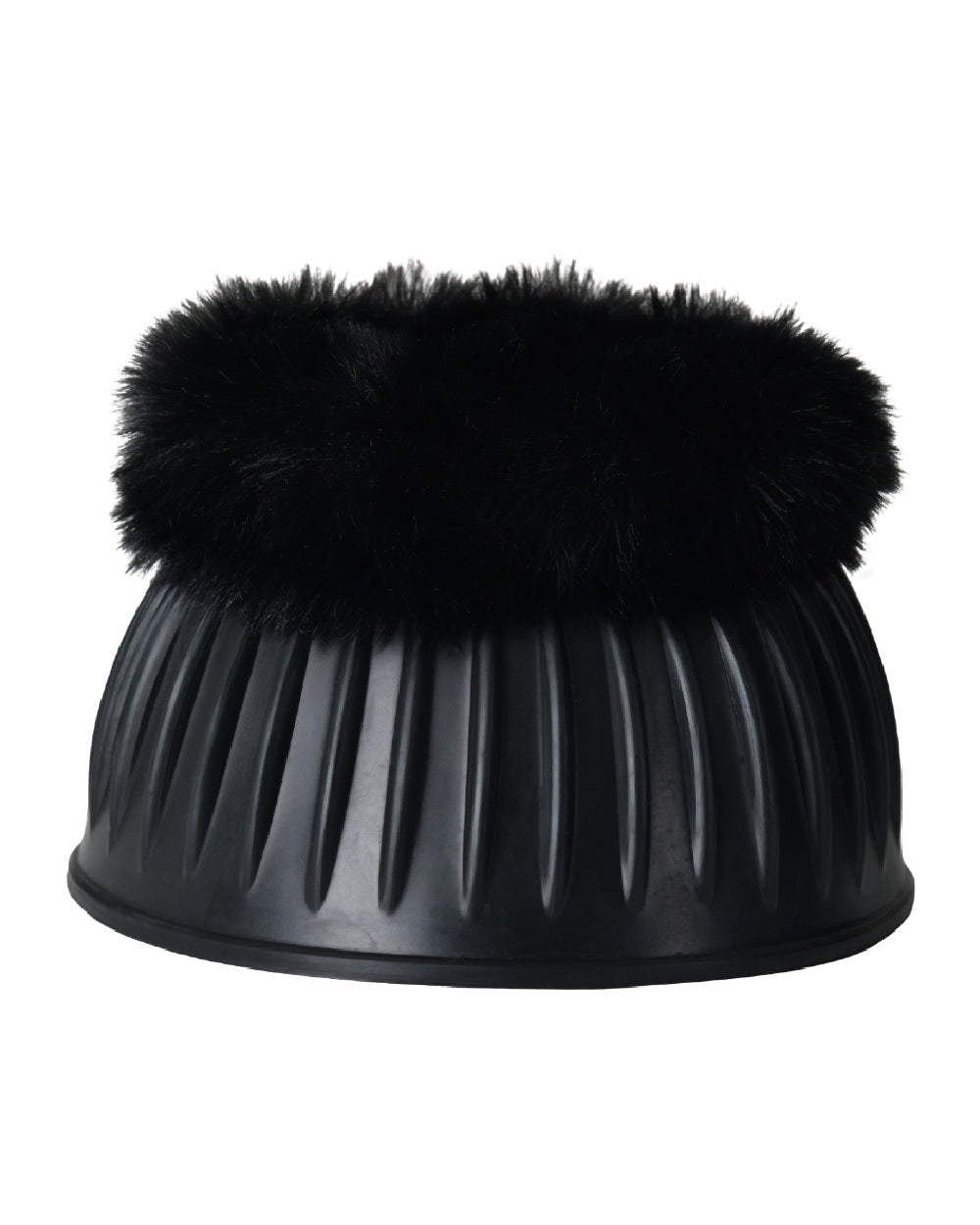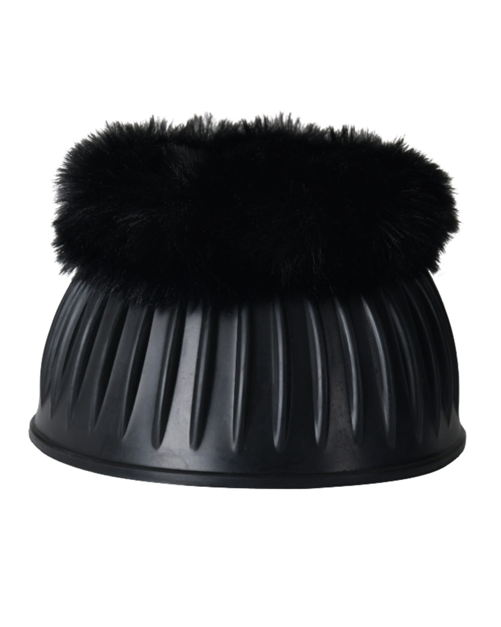 Black Coloured WeatherBeeta Tough-Tec Prime Fleece Trim Rubber Bell Boots on horse background
