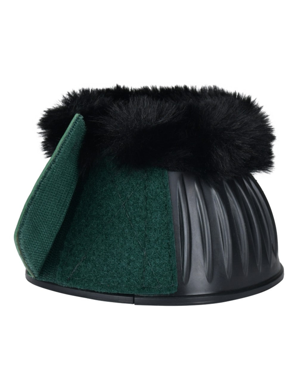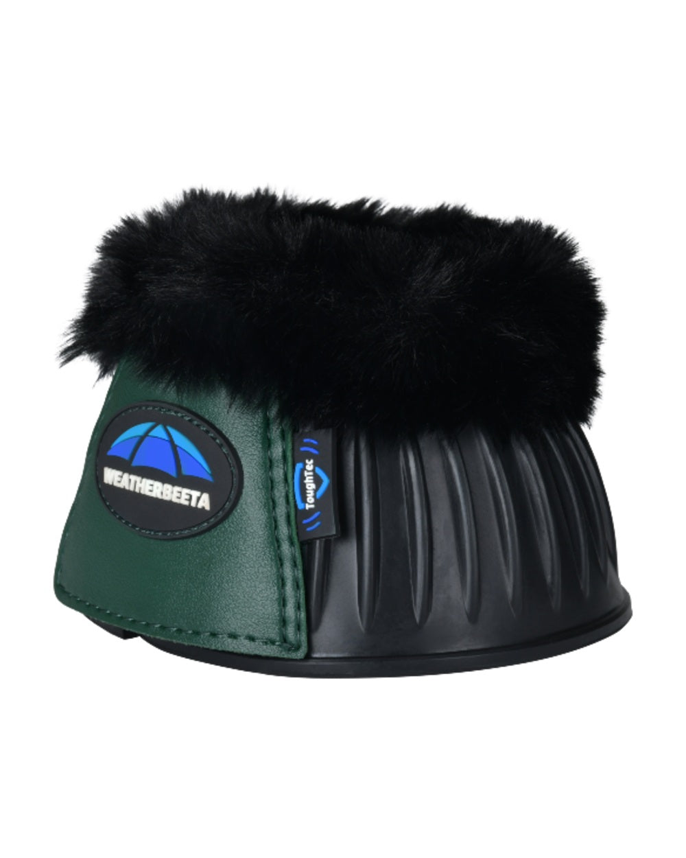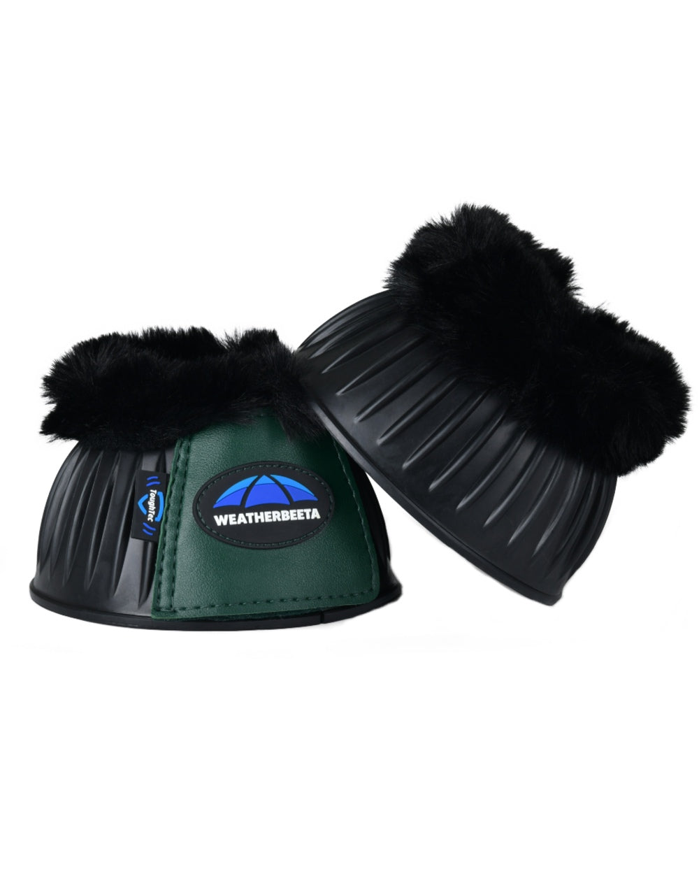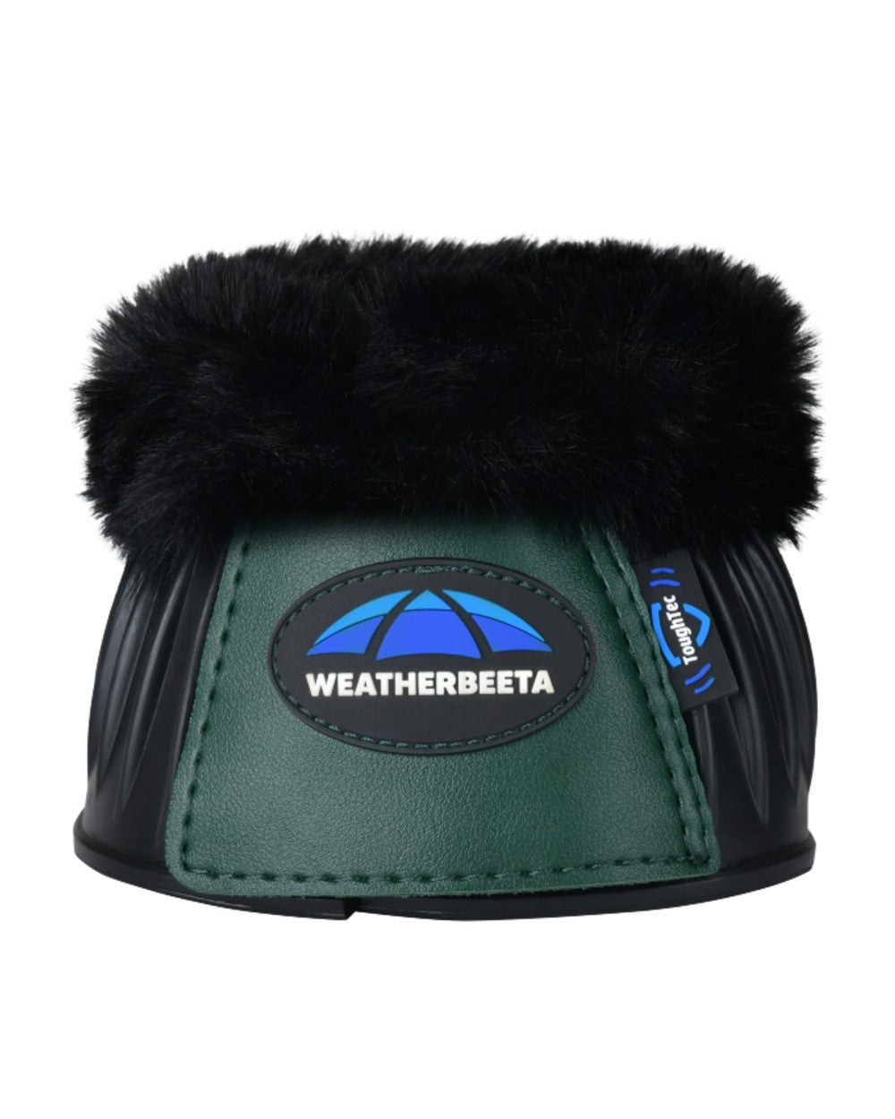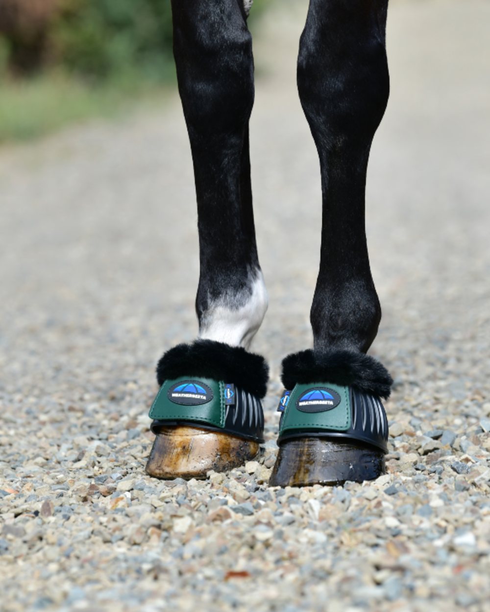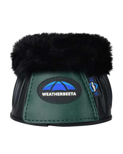 Black Forest Green Coloured WeatherBeeta Tough-Tec Prime Fleece Trim Rubber Bell Boots on horse background
